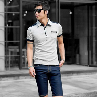 Áo sơ mi cổ trụ họa tiết hoa xanh Blue